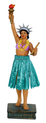 This beautiful dashboard doll is sculpted by an artist and hand painted to detail. She wears a classic island grass skirt and a Hawaiian flower lei around her neck. Place her on your car dashboard and watch her sway her hips... She will be your perfect driving companion...