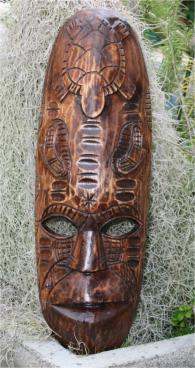 This mask would be perfect to create a South Seas island theme. Also, perfect for your tiki bar or luau. Beautiful indoors or outdoors or in a tiki garden.