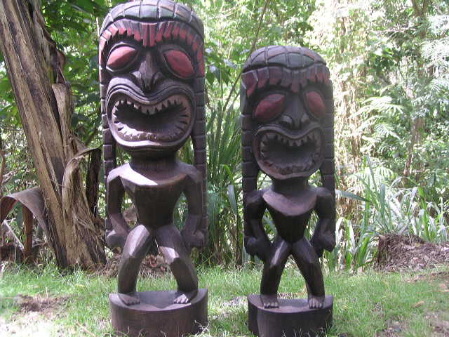 Here is a set of hand carved Tikis: Tiki Gods of Love and Prosperity.