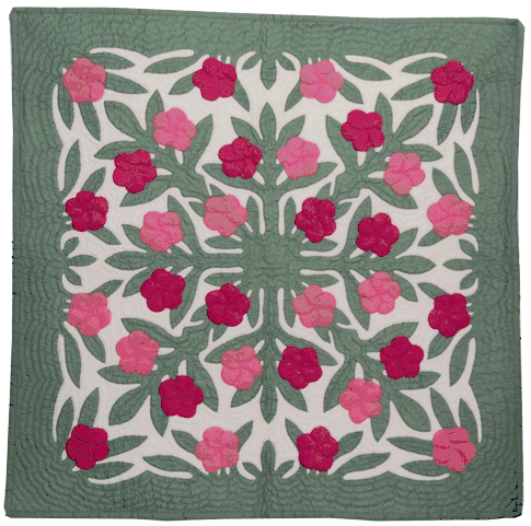 Each wall hanging is hand quilted by Master Quilters taught in the traditional Hawaiian style of quilting. Each Quilt has over 250,000 stitches and average 6-8 stitches per inch. We appliqué the design using the hidden or "blind" stitch onto the background material. It is then quilted with a ripple or echo pattern. Every piece is hand made with great care to insure your total satisfaction. Please contact us for availability and special orders (at NO EXTRA COST!).