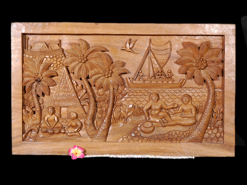 Here is a beautiful wooden storyboard, hand carved of premium Koa Wood, featuring "POLYNESIAN LIFESTYLE"