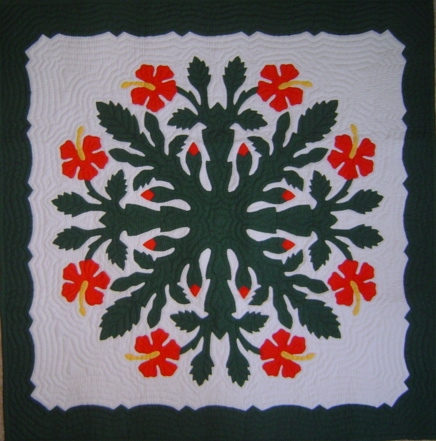 Each wall hanging is hand quilted by Master Quilters taught in the traditional Hawaiian style of quilting. Each Quilt has over 250,000 stitches and average 6-8 stitches per inch. We appliqué the design using the hidden or "blind" stitch onto the background material. It is then quilted with a ripple or echo pattern. Every piece is hand made with great care to insure your total satisfaction. Please contact us for availability and special orders (at NO EXTRA COST!).