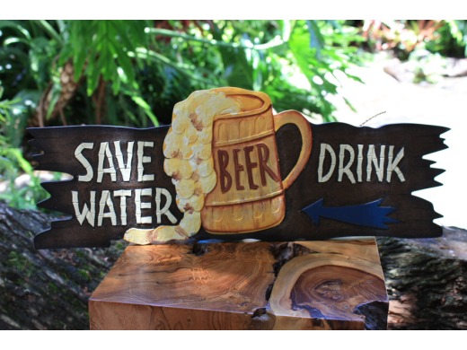 This is a hand made, wooden, driftwood tiki bar sign with the wording: "SAVE WATER DRINK BEER! ". A great sign to give your tiki bar a very tropical look. Also, perfect for your home or your outdoor living area!