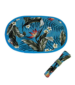 Set of 2 Blue Set of 2 Quilted Placemats with napkins. Quilt Blue Bird of Paradise Print Placemat Set