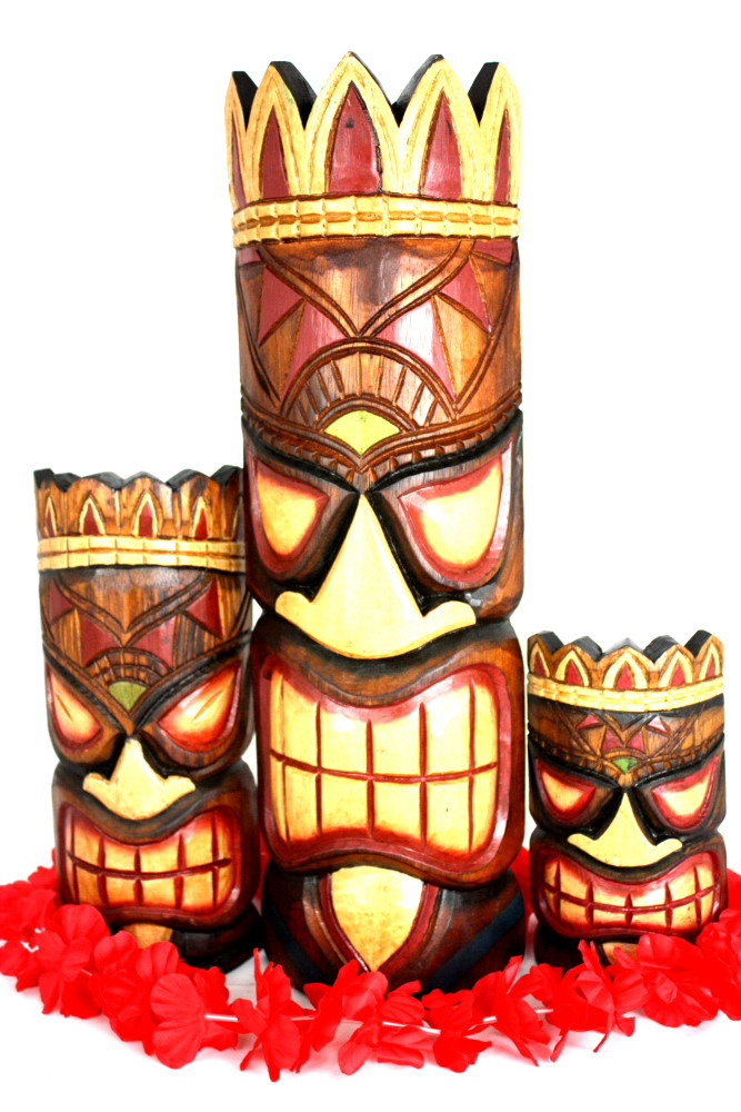 Here is a set of 3 hand carved Tiki masks with a beautiful light brown finish and silver. These Kanaloa masks - Tiki of the ocean and abundance were hand carved with great attention to details (ready to hang!).
