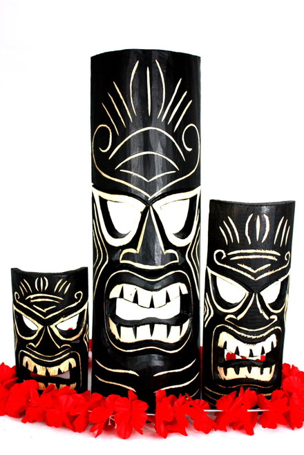 Here is a set of 3 hand carved Tiki masks with a beautiful light brown finish and silver. These Kanaloa masks - Tiki of the ocean and abundance were hand carved with great attention to details (ready to hang!).
