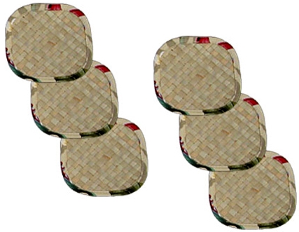 Details of each set: Six woven lauhala coasters with a classic floral print trim.
