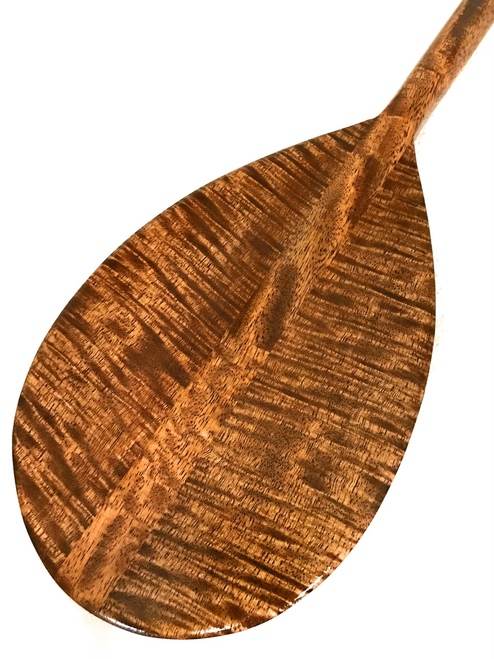 The paddle measures 24" long and features a straight shaft. The blade measures 10" x 7". These functional handmade Hawaiian Canoe Paddles are beautiful pieces of Hawaiiana and perfect to be displayed in your home or office. Each paddle is unique with respect to color, curl, & character of the wood. Paddle cost is dependent on the amount of color, curl, and character of the wood. These paddles are made by our Master Paddle Maker and each one is a truly unique treasure from Hawaii. Also available from our site is a traditional Koa wall mount.