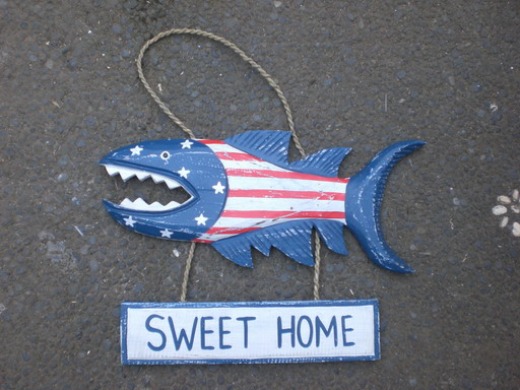 Here is a hand made sign that says it all... "Sweet Home"! Proudly display the Americana sign at your front door.