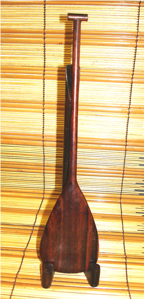 Here is an artfully designed Tiki paddle that was hand carved and hand painted with great attention to details. It comes with it's own stand and has an an antique finish which gives it a beautiful vintage look. Measurement: 10" X 2.5".
