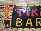 This is a hand made, retro Hawaiian style "TIKI BAR" tiki hut sign featuring carved tikis on the side. The wood has been hand painted for durability which adds it's own artistic touch and rustic feel. The sign meaures: 8" high x 20" wide. It comes ready to hang.