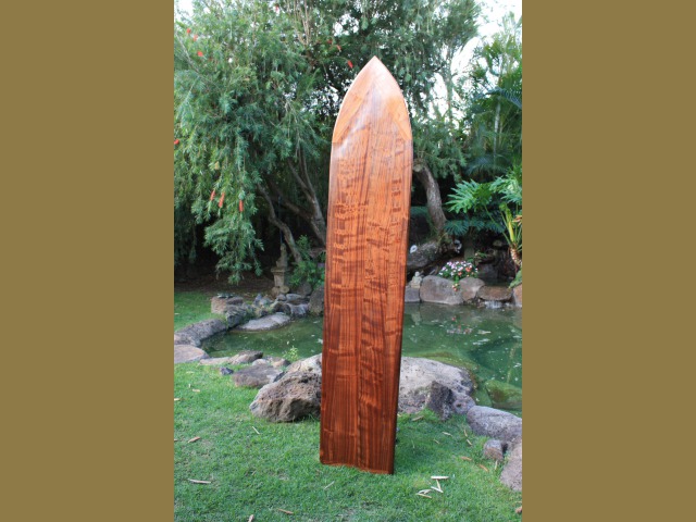 The longboard measures 8 FEET tall and 20" wide. It is a unique, one of a kind piece of art. This beautiful Hawaiian Longboard is also an exotic piece of Hawaiiana and perfect to be displayed in your home or office. Each board is unique with respect to color, curl, & character of the wood. It was made by our Master Paddle Maker and is a truly unique treasure from Hawaii.