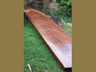 This is an authentic KOA WOOD LONGBOARD. It was hand made in Hawaii from a classic 1960's design. It is carved out of rare Koa wood which is hard to find today. Even though the moratorium on harvesting Koa wood has been lifted, it remains a highly sought after and scarce wood.(Paddle cost is dependent on the amount of color, curl, and character of the wood).
