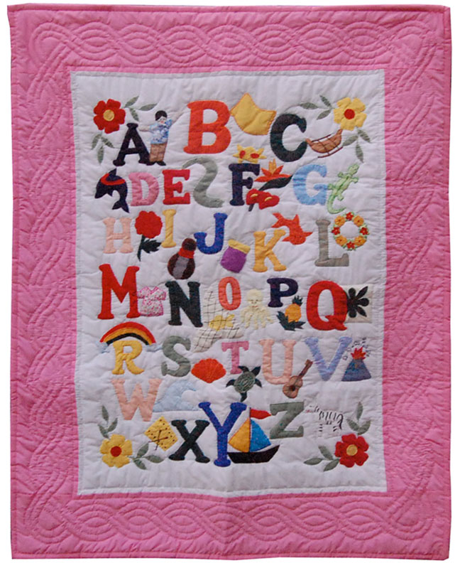 This quilt would add a relaxing, tropical island feel to baby's crib and the nursery. It is our responsibility to educate our keikis about the land and world around them. Make learning fun with this exotic quilt!