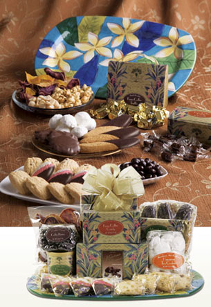 Celebrate special occasions with our Ultimate Indulgence Gift Set. Better than a gift basket, our handcrafted ceramic Plumeria Twilight Platter beautifully displays an array of gourmet Hawaiian treats. From crunchy Hawaiian Macadamia Nuts to Rich Dark Chocolate Kona Coffee Truffles, this Ultimate Indulgence Gift Set makes the perfect gift!