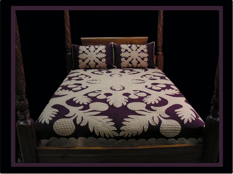Hawaiian Quilting is best known for its dramatic “Kapa Lau” or bed quilts. We offer the most extensive line of Bed Quilts, all hand quilted using the finest material on the market. Each of our Quilts are hand applique' and then echo stitched by master quilters each with many years of quilting experience and a love of quilting. Our Bed Quilts come with matching Shams (included in Price) and are available in the following sizes: