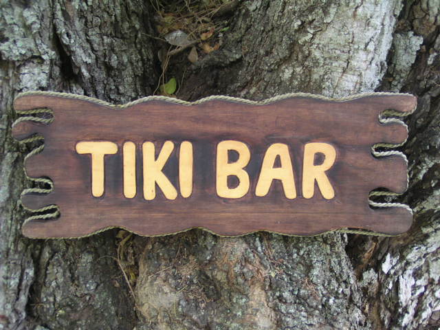 This is a hand made "TIKI BAR" Drift Wood tiki hut sign. Each letter of TIKI BAR is hand carved and raised. The sign has rope around it, which gives it a nautical touch and rustic feel. This great piece of handycraft measures 20 inches wide by 7 inches tall (50cm x 18cm). It comes ready to hang with 2 hooks in the back.
