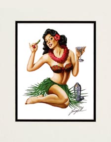 Vintage Hawaiian "MARTINI GIRL" matted pinup poster. Classic Nostalgia Hawaiiana Pin up. Tropical Teasers.