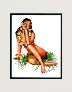 Vintage Hawaiian Pinup Hula Girl "ALOHA MEMORIES" by Garry Palm. Nostalgic Hawaiiana Pin up Poster.