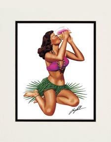 Vintage Hawaiian style Pinup Girl by Garry Palm. "CALL to PARADISE". Antique Tropical Teasers Pin ups. Nostalgia Hawaiiana poster