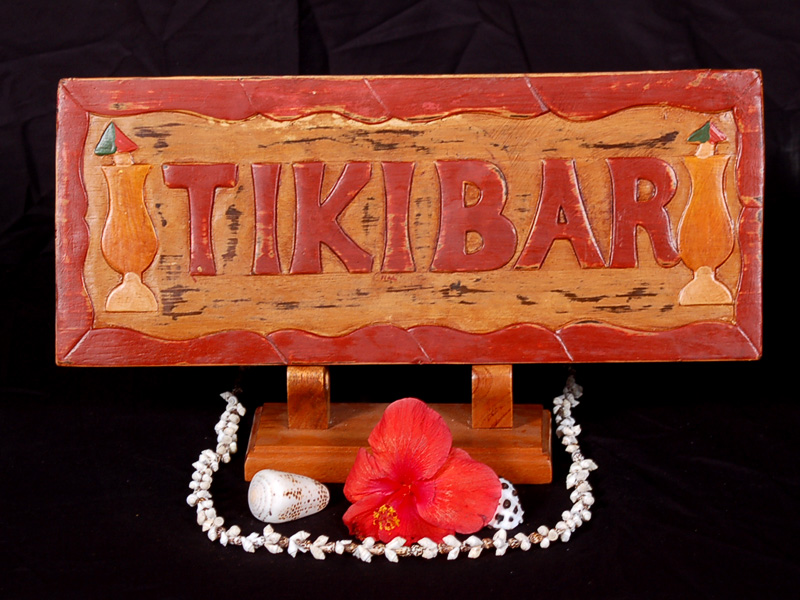 This is a hand made wooden TIKI BAR sign, featuring 2 tropical cocktails on each side. Dimensions: 16 inches long by 7 inches tall (41 cm X 18 cm).