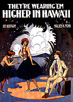 This is a vintage Hawaiian Sheet Music Cover (ca. 1916) entitled THEY'RE WEARING 'EM HIGHER IN HAWAII. A very vibrant and romantic composition with strong primary colors to compliment any decor scheme.