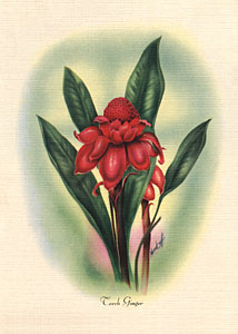 Vintage TORCH GINGER Hawaiian Floral Print by Mundorff. 1940's - 1950's Retro Nostalgia Hawaiiana