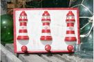 This very charming wall hanger included a set of three framed lighthouses featuring blue and white coastal colors.