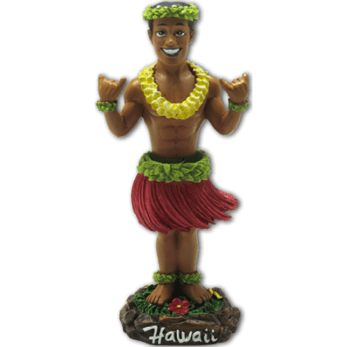 SHAKA MAN This is a local boy, poly-resin hula dashboard bobble nodder / shaker doll. He stands 4" high while gracefully doing the hula.